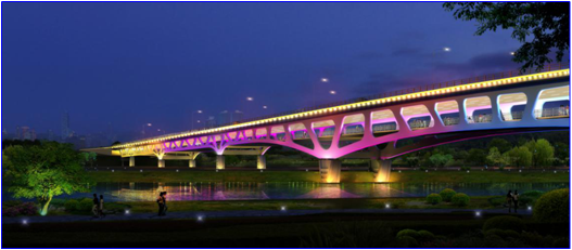 香槐六路灞河橋設(shè)計(jì)將現(xiàn)代工藝融入到傳統(tǒng)桁架造型之中,集“顏值”與“內(nèi)涵”于一身,具有“新”、“奇”、“便”的特點(diǎn):“新”即雙層橋面,人車(chē)分行;“奇”即造型與橋下景觀遙相呼應(yīng);“便”即為城市東北部地區(qū)提供了一條快速通道。