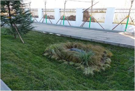 融入海綿城市設計理念,結合現場實際設置了植草溝、雨水花園、屋頂綠化等,充分“留住”雨水。
