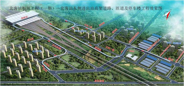 北客站樞紐工程(一期)——北客站東側(cè)進出站高架道路、匝道及停車樓工程位于西安市經(jīng)濟技術(shù)開發(fā)區(qū)高鐵新城,緊鄰西安北客站,設(shè)計范圍為元鳳二路以南,高鐵站以東,元朔路以北,延西高速以西,設(shè)計內(nèi)容包含約6.5km高架(結(jié)構(gòu)形式為樁基、承臺、墩柱、現(xiàn)澆箱梁及鋼箱梁,主線寬度12.5m)、市政道路約2km、管網(wǎng)設(shè)計、綠化提升,工程費用為11.74億元。