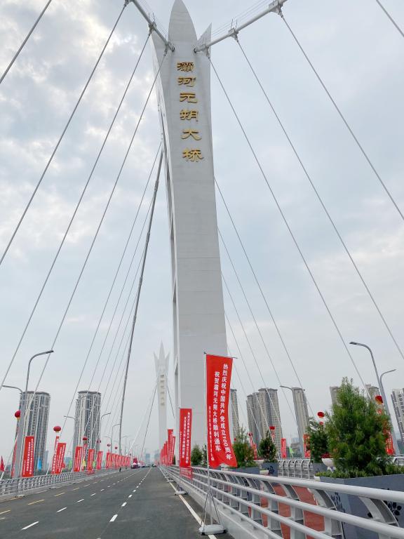 設(shè)計過程中項目組面對橋面寬、荷載大,主塔空間異形程度大,受力復(fù)雜等一系列設(shè)計難題,通過模型實驗和空間高等級有限元仿真分析等研究手段,結(jié)合開孔加勁板組合預(yù)埋式構(gòu)件等鋼混組合結(jié)構(gòu)工藝,成功攻克了多項關(guān)鍵技術(shù),確保了橋梁的結(jié)構(gòu)性能和施工便易性,也為國內(nèi)外同類工程的建設(shè)提供了有益的技術(shù)借鑒。該橋的順利通車,將連接起國際港務(wù)區(qū)和浐灞生態(tài)區(qū),為市民出行提供便利,成為全運會期間重要的交通要道。