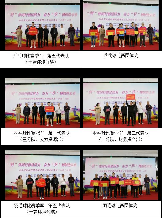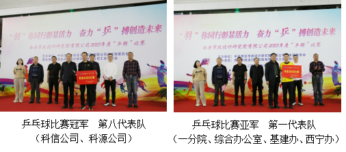 經(jīng)過一天時間的緊張角逐,乒乓球團體賽和羽毛球團體賽分別決出了前三名,第八代表隊榮獲乒乓球比賽冠軍、第一代表隊獲得亞軍、第五代表隊獲得季軍;第三代表隊榮獲羽毛球比賽冠軍、第二代表隊獲得亞軍、第五代表隊獲得季軍;比賽還設置了優(yōu)秀組織獎、道德風尚獎、勇于拼搏獎、科學團隊獎、最佳風格獎,公司領導分別為各獲獎代表隊頒獎。