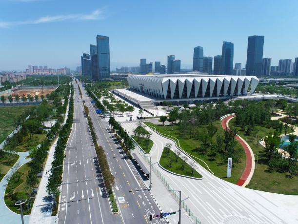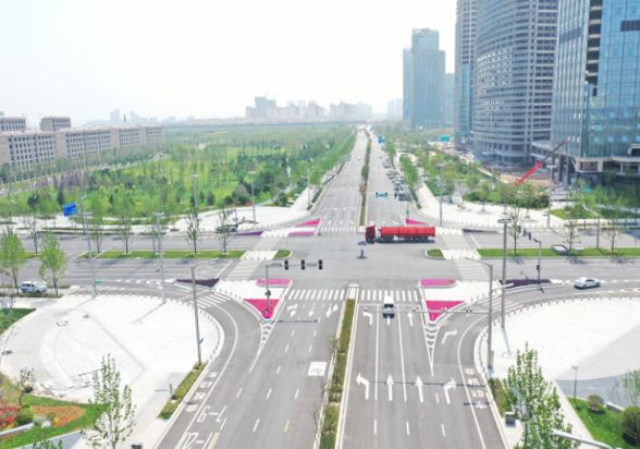 西安國(guó)際港務(wù)區(qū)柳新路(迎賓大道-港務(wù)西路)、向東路(迎賓大道-港務(wù)西路)道路和配套管線工程,為西安國(guó)際港務(wù)區(qū)“六橫五縱”主干骨架路網(wǎng)中重要的“兩橫”,是奧體中心重要對(duì)外交通通道。其中柳新路位于西安奧體中心主場(chǎng)館北側(cè),道路全長(zhǎng)2107.882m,規(guī)劃紅線寬度50m,雙向6車道;向東路位于西安奧體中心主場(chǎng)館南側(cè),道路全長(zhǎng)1968.553m,規(guī)劃紅線寬度70m,雙向8車道。主要包括道路、排水、再生水、交通、管溝等專業(yè)。道路設(shè)計(jì)遵循通行舒適、景觀協(xié)調(diào)、公交優(yōu)先、以人為本的設(shè)計(jì)理念,合理分配機(jī)動(dòng)車、公交車、非機(jī)動(dòng)車、行人路權(quán)。在交叉口設(shè)計(jì)中,通過設(shè)置導(dǎo)流島,使得有限的空間資源最大程度發(fā)揮交通設(shè)施的效率;在人行道鋪裝設(shè)計(jì)中,通過石材樣式的變化,使得整體鋪裝與周邊景觀綠化、場(chǎng)館相互融合;在慢行空間打造上,重新統(tǒng)籌空間,設(shè)置自行車專用道;結(jié)合公交、地鐵站點(diǎn)合理布設(shè)自行車??奎c(diǎn),引導(dǎo)居民采用“自行車+公交”的出行方式;在附屬設(shè)施設(shè)計(jì)中,通過港務(wù)區(qū)特有的路緣石、路名牌、車止石等小構(gòu)件設(shè)計(jì),提升道路整體觀感和使用品質(zhì)。