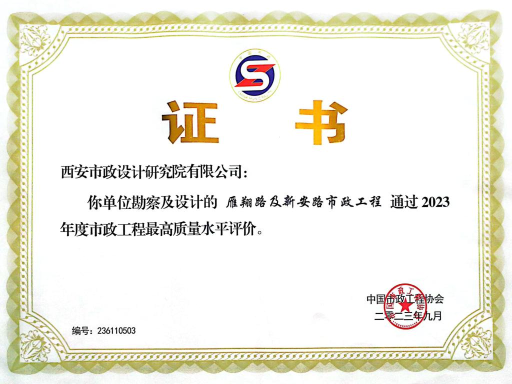 近日,中國(guó)市政工程協(xié)會(huì)頒發(fā)了2023年度市政工程最高質(zhì)量水平評(píng)價(jià)榮譽(yù)證書,我公司勘察設(shè)計(jì)的“西安國(guó)際港務(wù)區(qū)柳新路(迎賓大道-港務(wù)西路)、向東路(迎賓大道-港務(wù)西路)道路和配套管線工程”、“雁翔路及新安路市政工程”獲此殊榮。