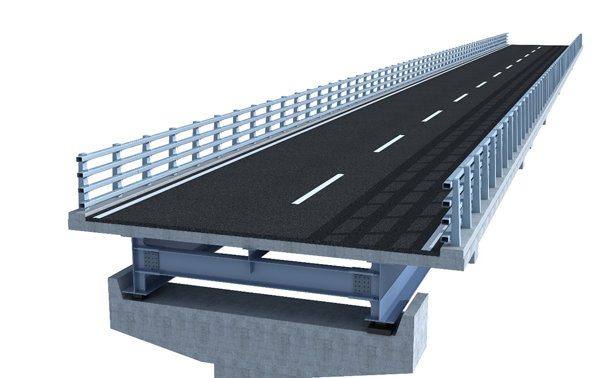 此標(biāo)準(zhǔn)圖集適用道路等級(jí)為城市主干路,荷載等級(jí)達(dá)城-A級(jí)、防撞護(hù)欄防撞等級(jí)SA級(jí)、設(shè)計(jì)安全等級(jí)一級(jí),橋梁外側(cè)統(tǒng)一設(shè)置預(yù)制裝配式人行道和非機(jī)動(dòng)車道。整體采用全預(yù)制方案,實(shí)現(xiàn)主體與附屬設(shè)施同步標(biāo)準(zhǔn)化設(shè)計(jì)。其中,鋼主梁體系創(chuàng)新采用“大縱梁+小縱梁”結(jié)構(gòu),大幅增強(qiáng)了結(jié)構(gòu)整體剛度與穩(wěn)定性,小縱梁的設(shè)置有效縮減混凝土橋面板跨徑,簡(jiǎn)化構(gòu)造;附屬結(jié)構(gòu)的整體預(yù)制提升了施工精細(xì)化程度,簡(jiǎn)化了現(xiàn)場(chǎng)安裝流程,真正踐行綠色低碳、經(jīng)濟(jì)節(jié)能理念,便于后期維護(hù)改造;同時(shí)通過增加整體式人行道板與防撞護(hù)欄共享橋面板錨固構(gòu)造,為遠(yuǎn)期交通發(fā)展預(yù)留了充足空間,未來可通過拆卸或重組附屬設(shè)施預(yù)制構(gòu)件靈活調(diào)整道路斷面形式,增強(qiáng)交通適應(yīng)性。