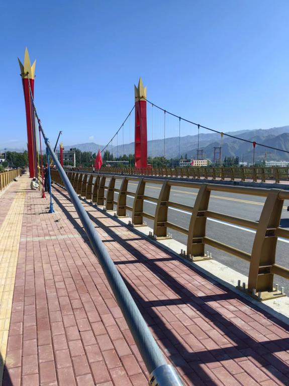 懸索景觀安裝堪稱工程的“硬骨頭”,懸索景觀負(fù)責(zé)人邢禮榮無(wú)懼高原超強(qiáng)紫外線、晝夜溫差等挑戰(zhàn),長(zhǎng)期駐守施工現(xiàn)場(chǎng),全程指導(dǎo)橋塔定位、索鞍調(diào)試、主纜架設(shè)、錨具及吊桿安裝,精準(zhǔn)把控主纜線形調(diào)整,最大程度降低溫度變化對(duì)結(jié)構(gòu)的影響,為懸索景觀的完美呈現(xiàn)和項(xiàng)目如期通車提供了有力支持。這份“扎根高原”的韌勁贏得了尖扎縣委、縣政府及住建局領(lǐng)導(dǎo)的高度肯定。